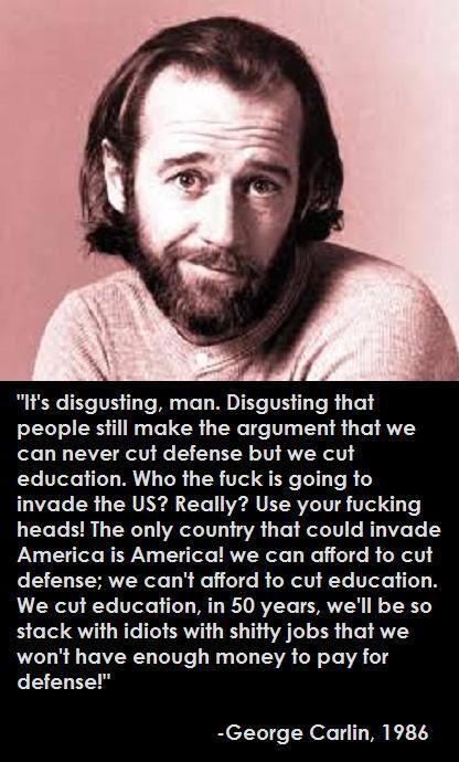 Unknown's avatarAuthor HP McLovincraftPosted on September 29, 2020Format ImageTags defense spending, education, george carlin, quotes