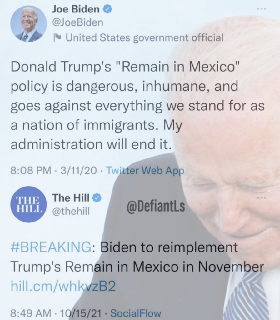 Unknown's avatarAuthor HP McLovincraftPosted on October 19, 2021Format ImageTags hypocrisy, illegal immigration, joe biden, trump derangement syndrome