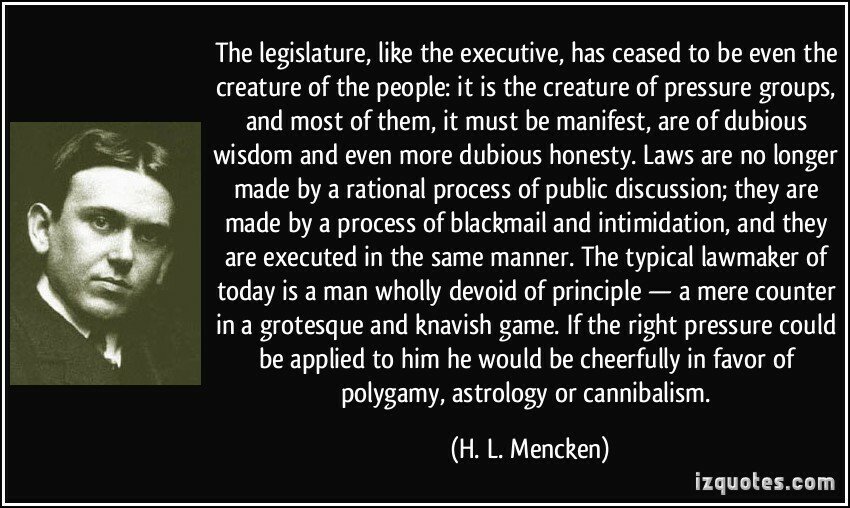 H.L. Mencken on campaign promises… “If a politician found he had cannibals among his constituents, he would promise them missionaries for dinner.”H.L. Mencken