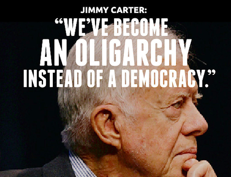 “The politicians are put there to give you the idea that you have freedom of choice. You don’t. You have no choice. You have owners. They own you. They own everything. They own all the important land. They own and control the corporations. They’ve long since bought and paid for the Senate, the Congress, the state houses, the city halls. They got the judges in their back pockets and they own all the big media companies, so they control just about all of the news and information you get to hear … They spend billions of dollars every year lobbying. Lobbying to get what they want. Well, we know what they want. They want more for themselves and less for everybody else … It’s called the American Dream, cause you have to be asleep to believe it.”—George Carlin