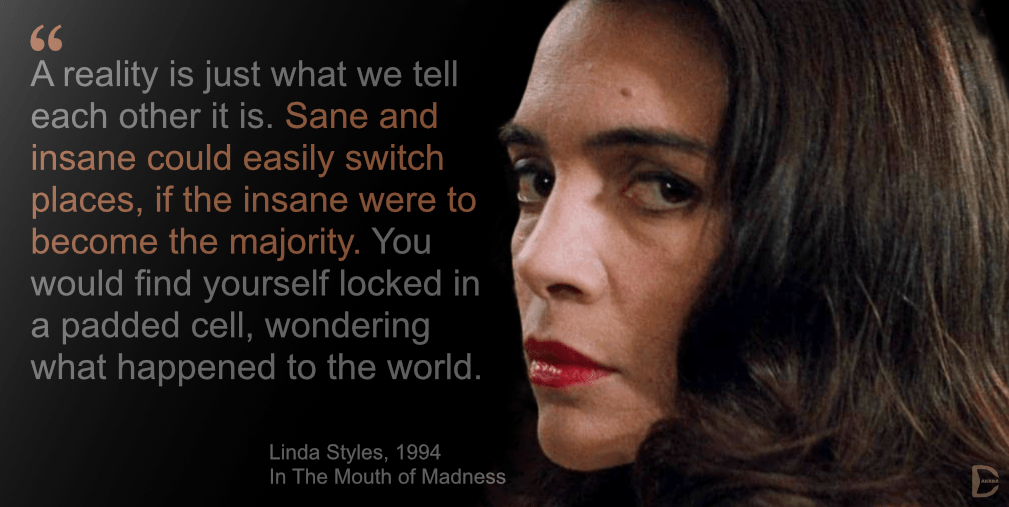 “Only the disciplined mind can see reality, Winston. You believe that reality is something objective, external, existing in its own right. You also believe that the nature of reality is self-evident. When you delude yourself into thinking that you see something, you assume that everyone else sees the same thing as you. But I tell you, Winston, that reality is not external. Reality exists in the human mind, and nowhere else. Not in the individual mind, which can make mistakes, and in any case soon perishes; only in the mind of the Party, which is collective and immortal. Whatever the Party holds to be truth is truth. It is impossible to see reality except by looking through the eyes of the Party.” Ibid, at p. 249