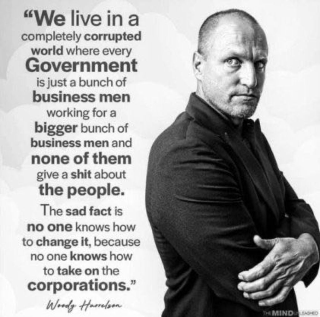 Unknown's avatarAuthor HP McLovincraftPosted on May 18, 2022Format ImageTags corporations, corruption, quotes, woody harrelsonLeave a comment on Woody Harrelson on corruption…